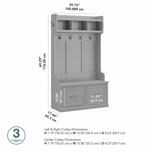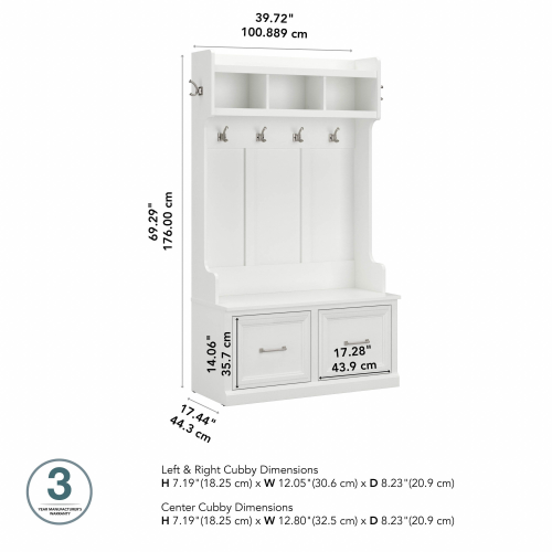 Woodland 40W Hall Tree and Shoe Storage Bench with Doors
