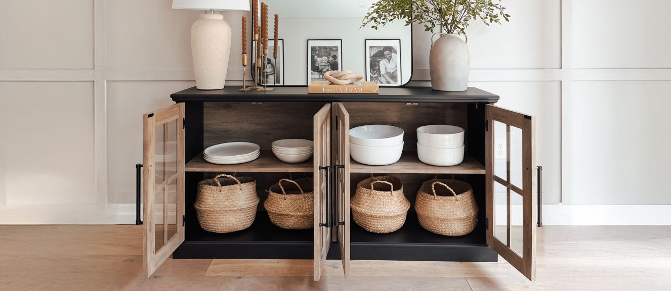 Love my sideboard. The glass doors allow for beautiful styling of my serving ware! Highly recommend this for any dining or kitchen space.