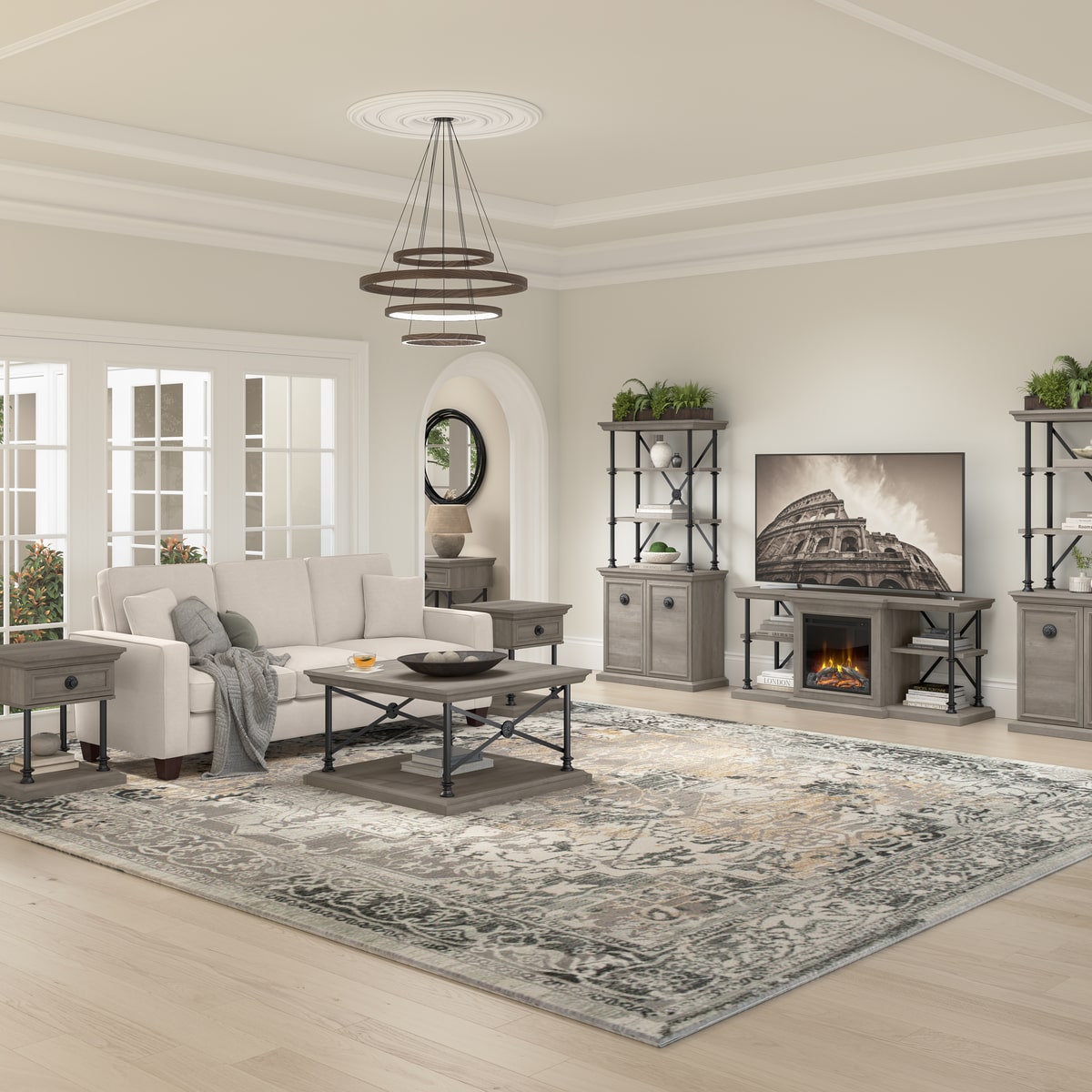 Coliseum Living Room Set with 60W TV Stand and Two Bookcases with Doors