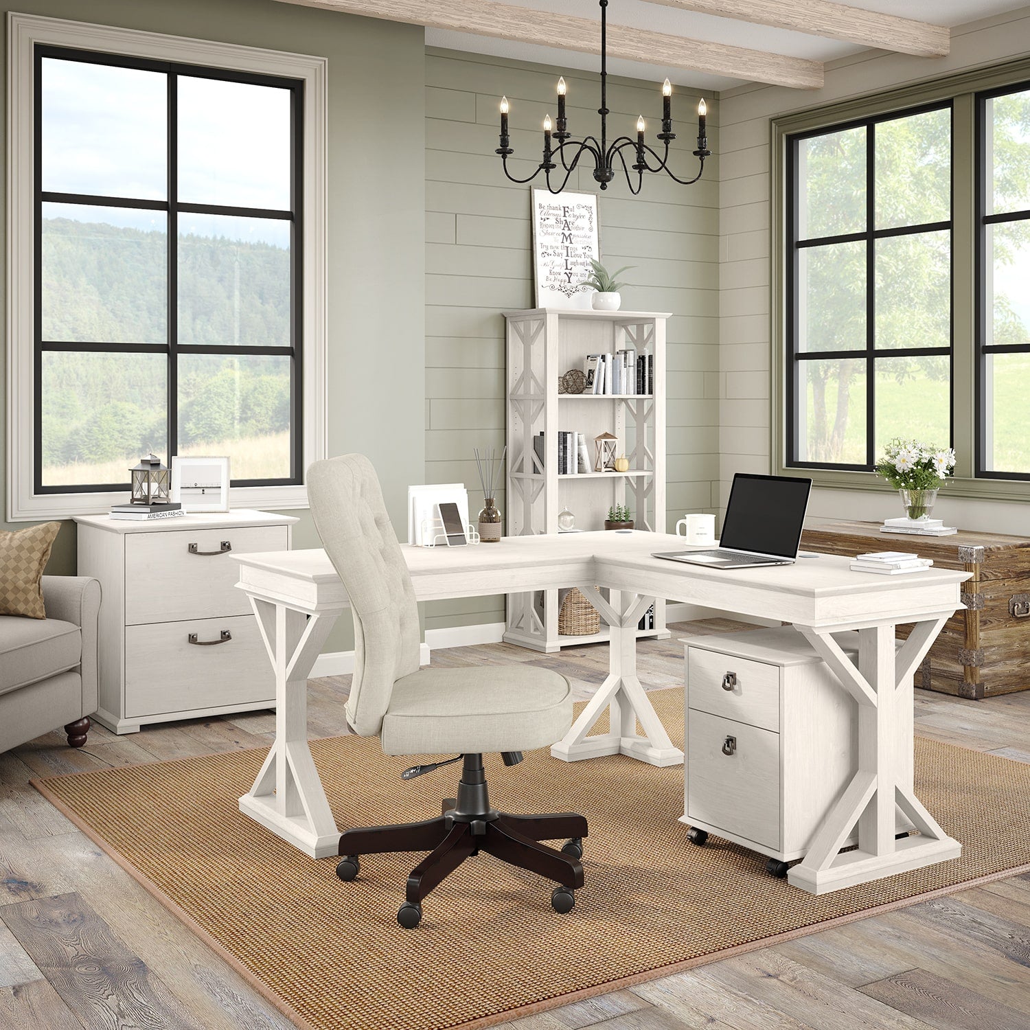 Homestead 60W Farmhouse L Shaped Desk with Mobile File Cabinet