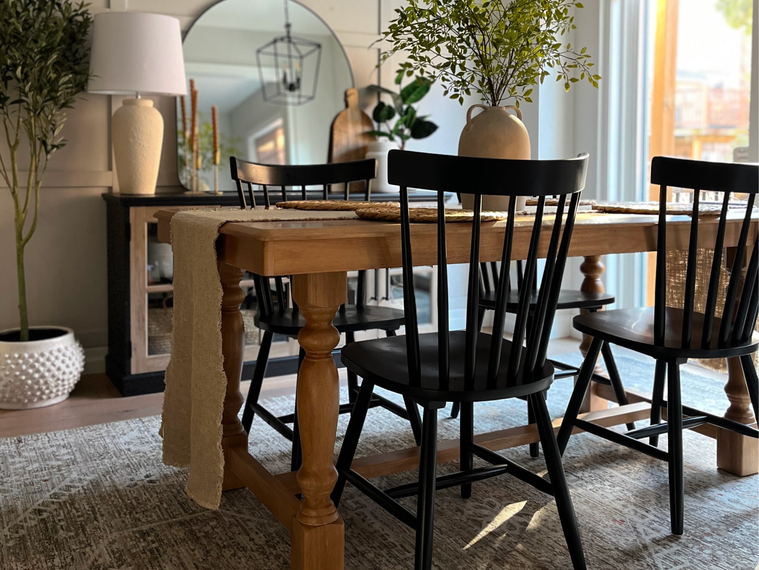 Interior designer Sarah brings timeless charm to everyday spaces, blending classic silhouettes with fresh, thoughtful touches. In her dining room, she paired the farmhouse-inspired Sterling Dining Table with Windsor Back Dining Chairs for a look that’s both grounded and graceful. The Westbrook Sideboard finishes the space, echoing the table’s warm undertones and pulling everything together with ease.
