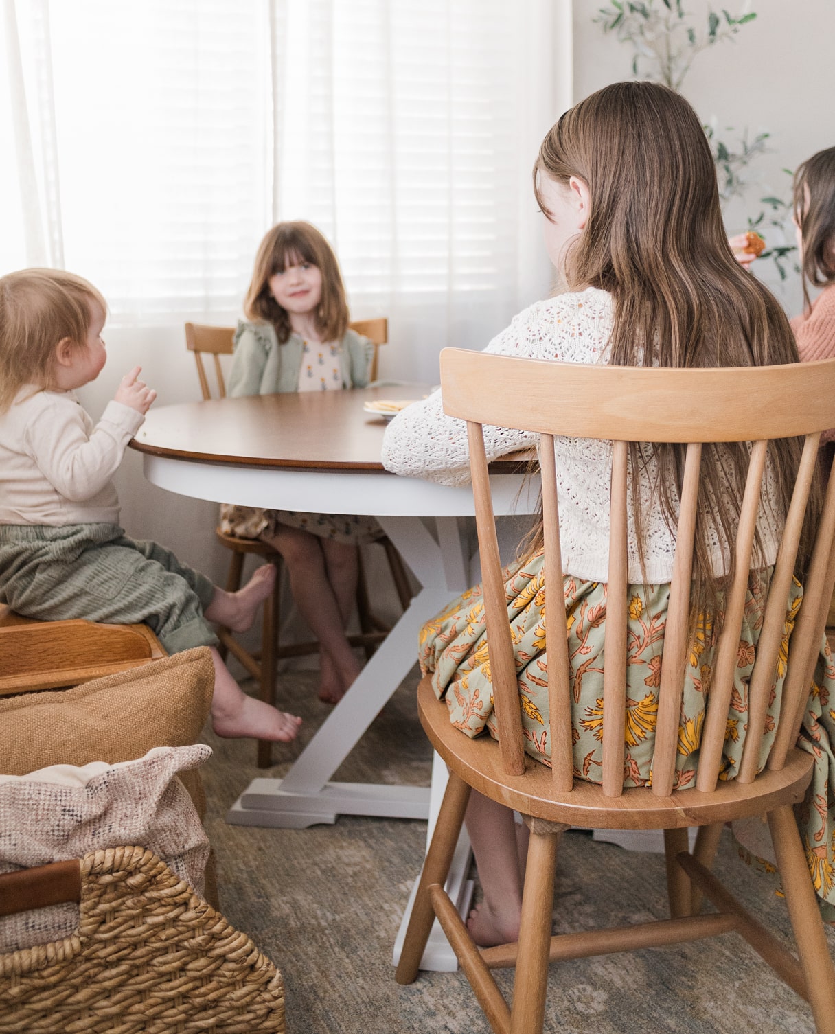 As a mom of five and a professional photographer, Tierney knows the value of a well-designed space. She turned her breakfast nook into a hardworking hub with the West End Table and Windsor Dining Chairs—just right for meals, homeschool, and crafts. The gently curved edges and timeless design make the set as comfortable as it is family-friendly.