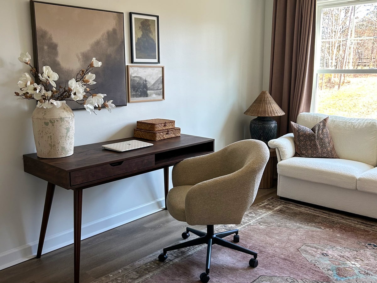 To make the most of her living room, Whitney carved out a dedicated workspace with the Nora Writing Desk and Fairfax Chair. The clean lines and Scandinavian-meets-mid-century design blend seamlessly with the rest of her home, showing just how intentional every choice really is.