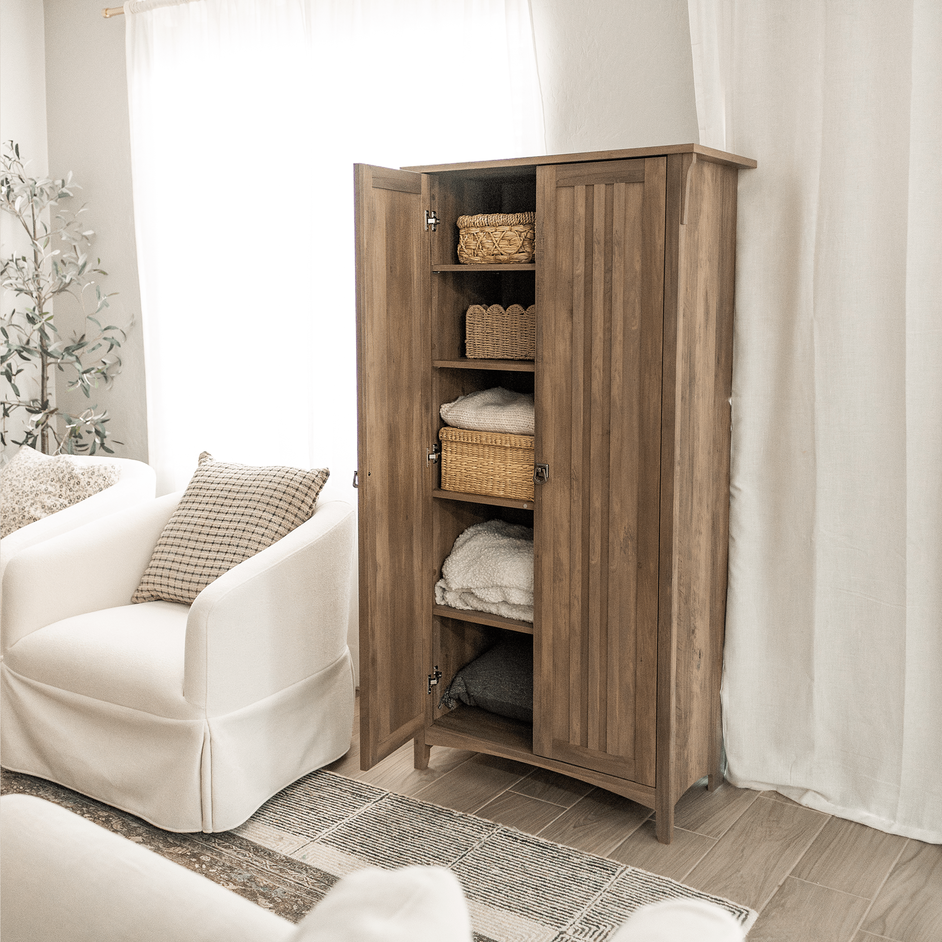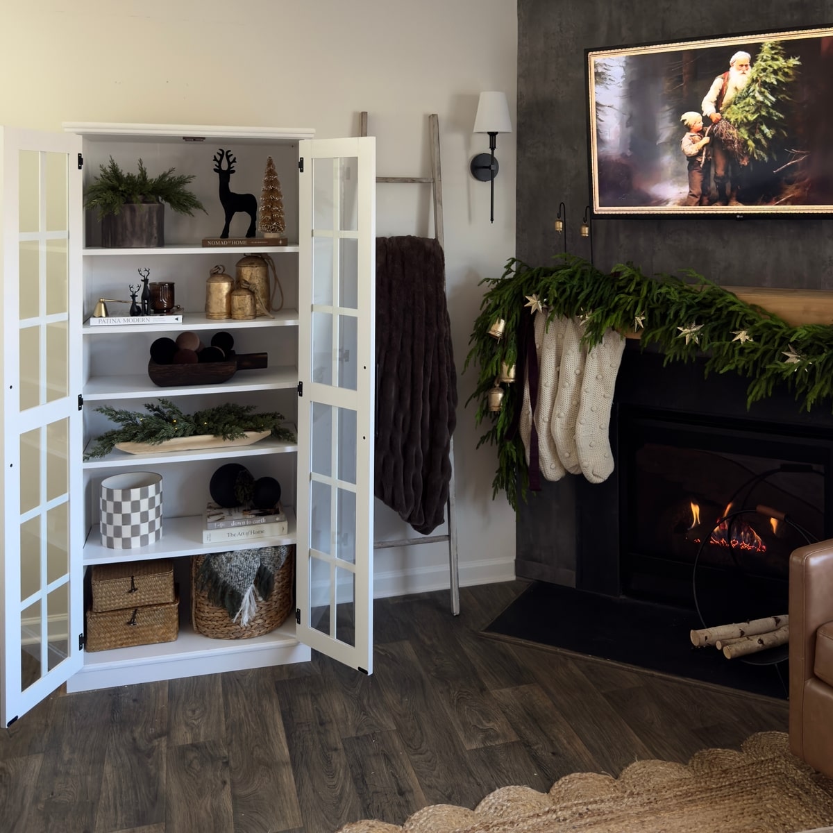 Recreate Judith's styleThe white color is a beautiful twist on the curio cabinet trend! It has a cozy Nancy Meyers/ coastal aesthetic! I love the windowpane doors and that the shelves are adjustable. There are so many different display and storage possibilities and the price point is great!!
