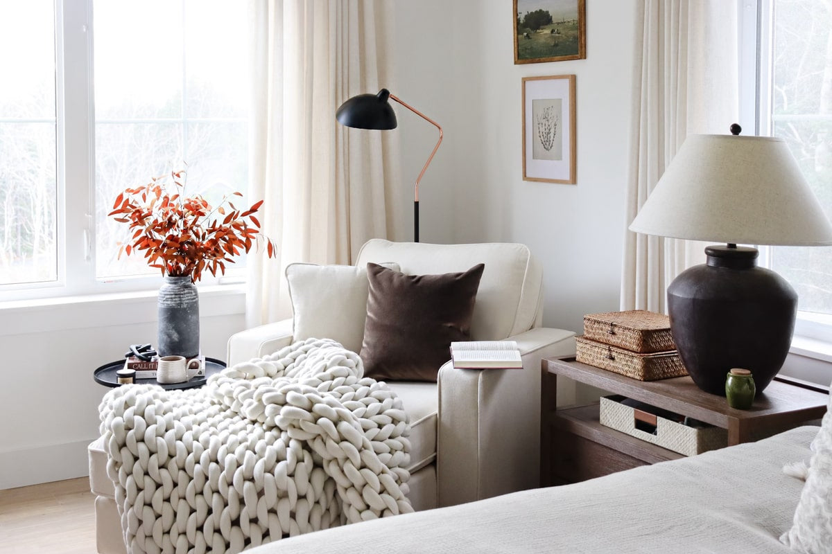 Lauren designed her home as a peaceful retreat with thoughtful touches throughout. In her bedroom, the Stockton Chaise Lounge sets the scene for a cozy reading nook with its soft neutral tone and relaxed silhouette.