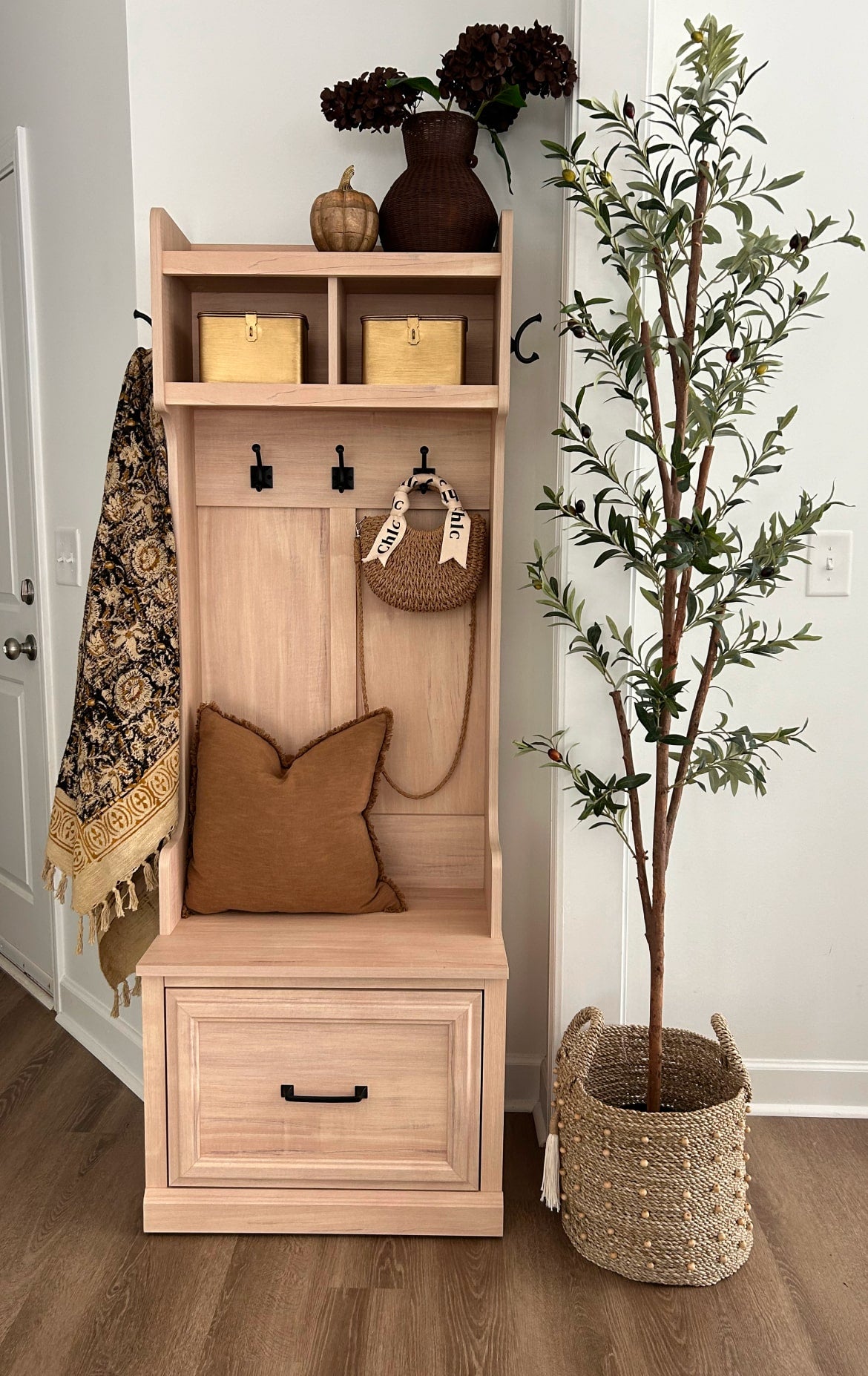 Whitney has created a home that feels calm, curated, and cozy—proof that style doesn’t have to come with a big price tag. In her bedroom, the Stockton Accent Chair adds a soft, inviting touch to a reading nook that’s perfect for winding down. In the entryway, she chose the Woodland Hall Tree—a smart, stylish solution that combines function and charm.