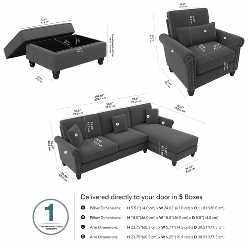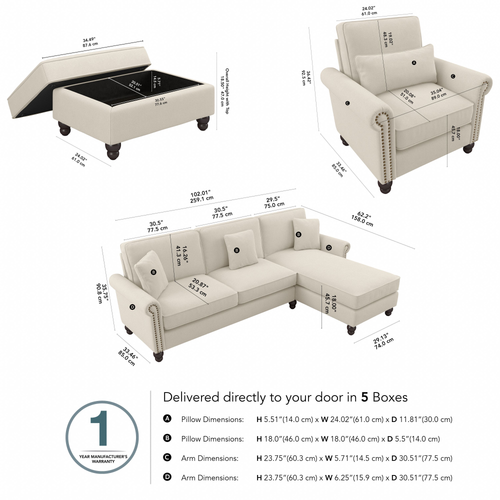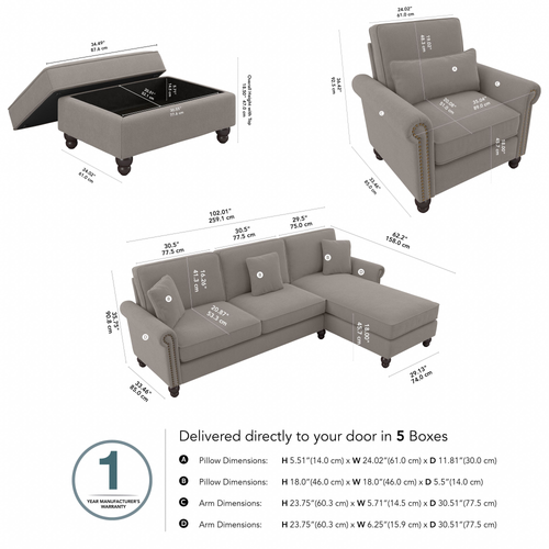 Coventry 102W Sectional Couch with Reversible Chaise Lounge, Accent Chair, and Ottoman