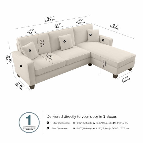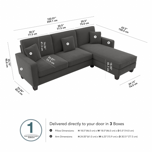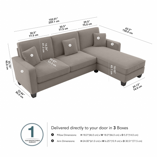 Stockton 102W Sectional Couch with Reversible Chaise Lounge