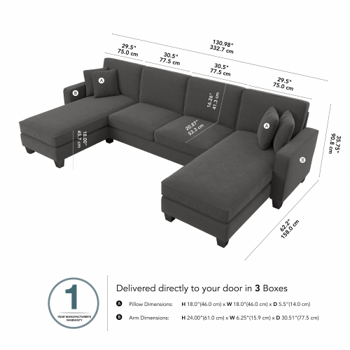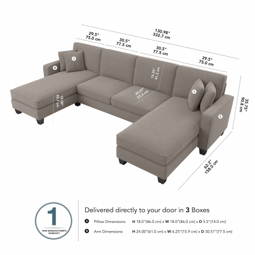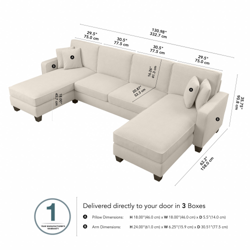 Stockton 131W Sectional Couch with Double Chaise Lounge