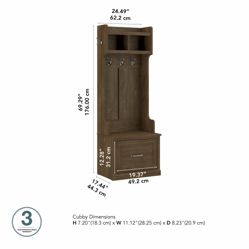 Woodland 24W Hall Tree and Small Shoe Bench with Drawer