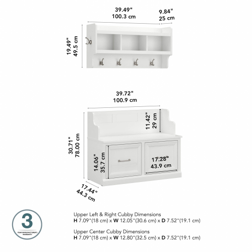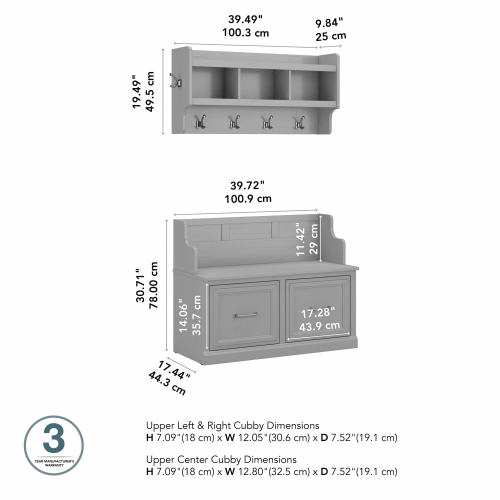 Woodland 40W Entryway Bench with Doors and Wall Mounted Coat Rack