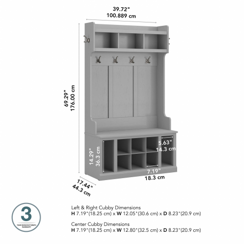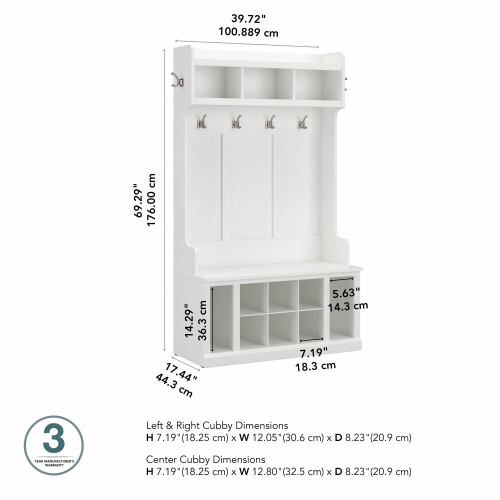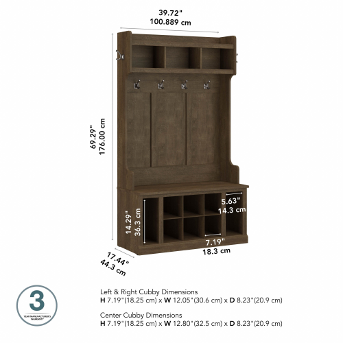 Woodland 40W Hall Tree and Shoe Storage Bench with Shelves