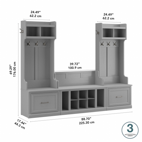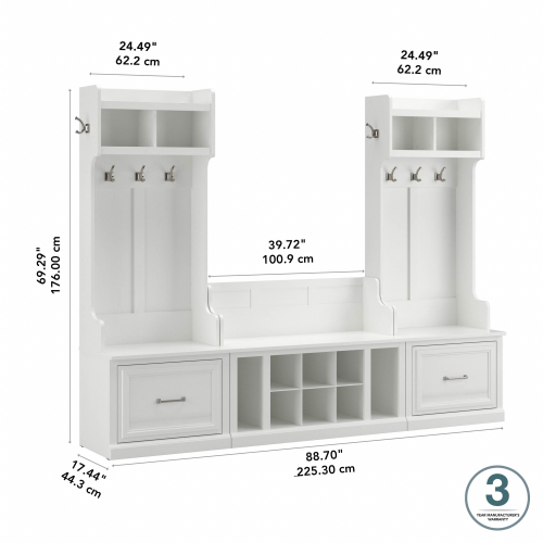 Woodland Entryway Storage Set with Hall Trees and Shoe Bench with Drawers