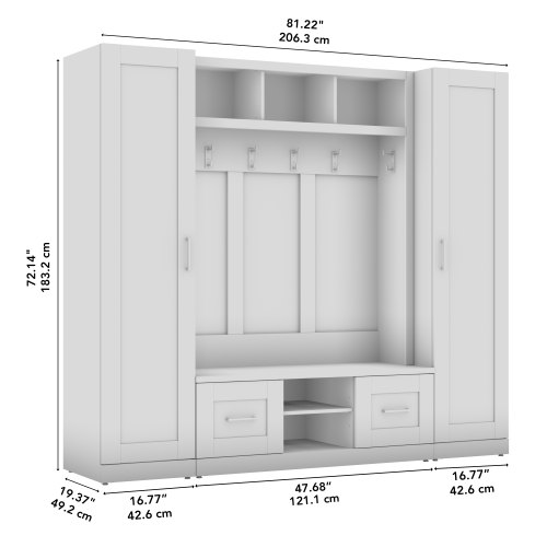 Hampton Heights Full Entryway Storage Set with Hall Tree, Shoe Bench with Doors and Narrow Cabinets