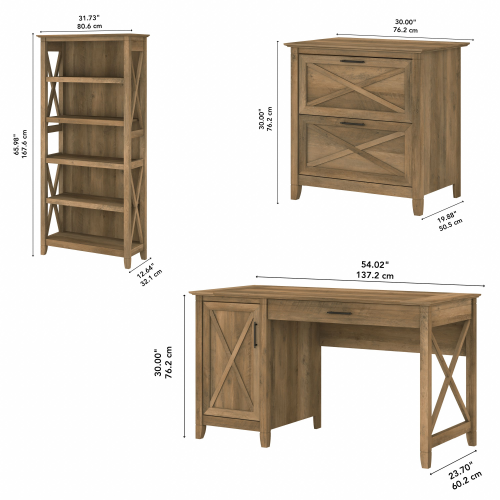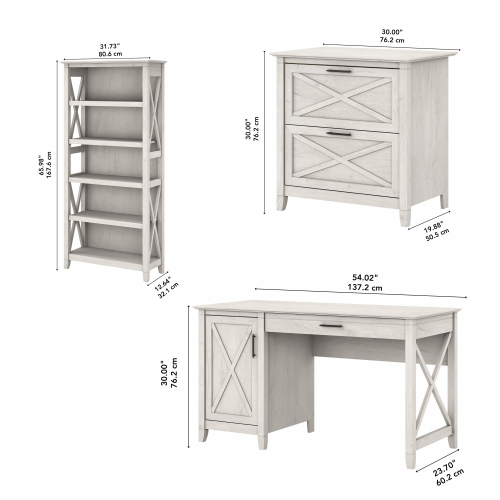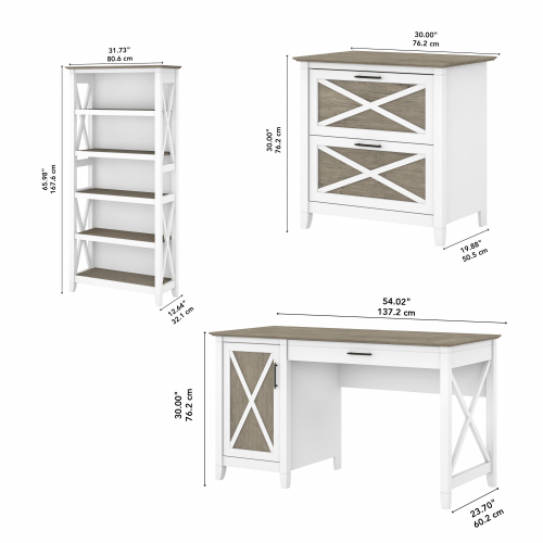 Key West 54W Computer Desk with 2 Drawer Lateral File Cabinet and 5 Shelf Bookcase