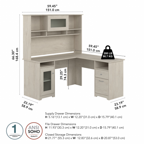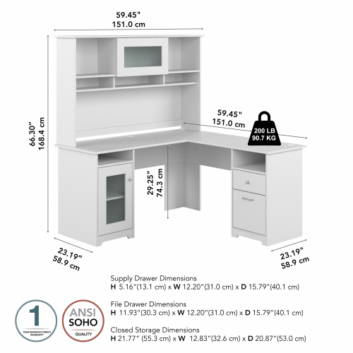 Cabot 60W L Shaped Computer Desk with Hutch and Storage